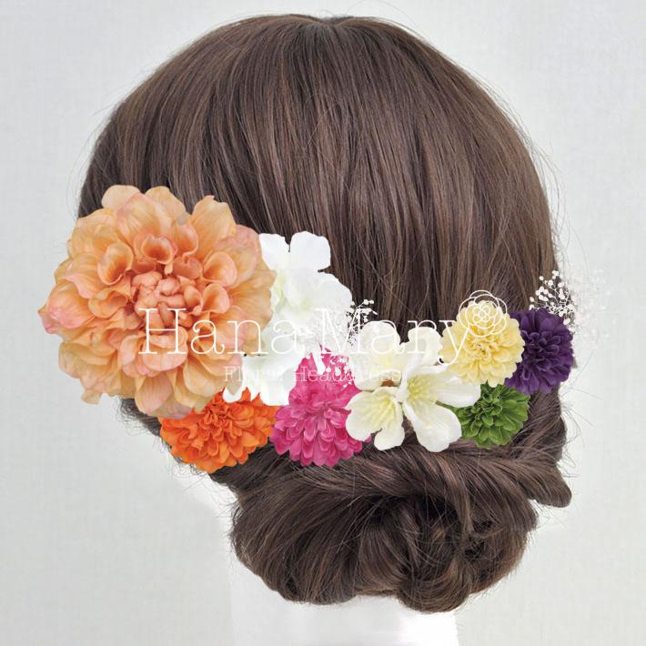 その日のヘアスタイルによって自由に一輪一輪配置できます。お花の数が多い場合でも、アメピンを追加して簡単にしっかりと固定できます。