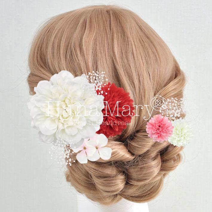 その日のヘアスタイルによって自由に一輪一輪配置できます。お花の数が多い場合でも、アメピンを追加して簡単にしっかりと固定できます。