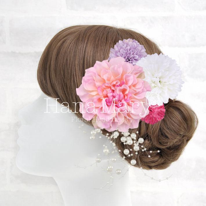 その日のヘアスタイルによって自由に一輪一輪配置できます。お花の数が多い場合でも、アメピンを追加して簡単にしっかりと固定できます。