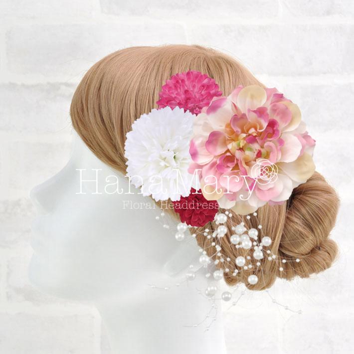 HanaMaryの髪飾りは生花をリアルに再現したアートフラワーと呼ばれるハイクオリティーな造花を使用しています。耐久性に優れ、成人式・卒業式やウェディングなどに何度でも繰り返し使用することができます。