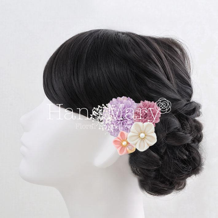 HanaMaryの髪飾りは生花をリアルに再現したアートフラワーと呼ばれるハイクオリティーな造花を使用しています。耐久性に優れ、成人式・卒業式やウェディングなどに何度でも繰り返し使用することができます。