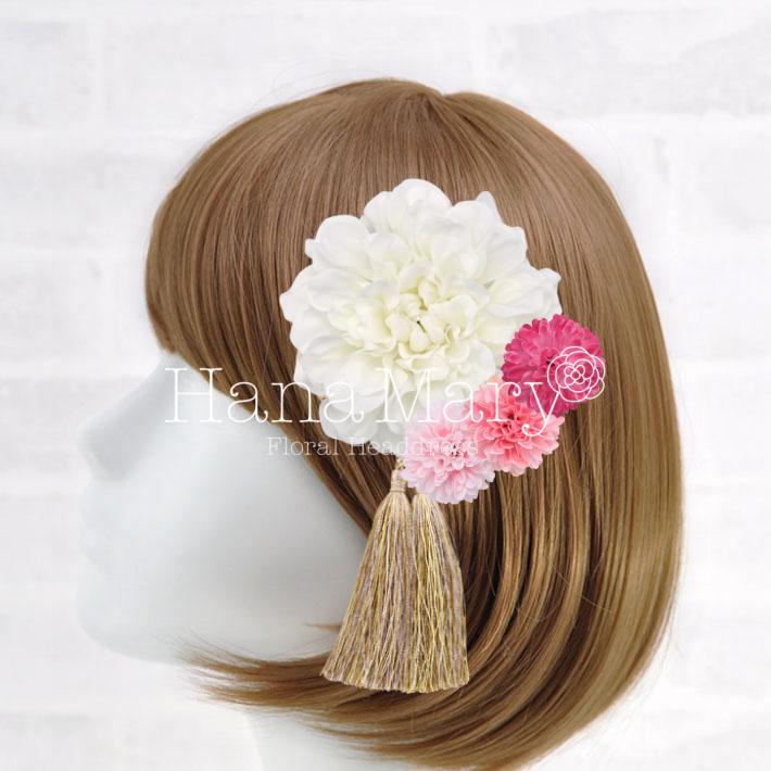 HanaMaryの髪飾りは生花をリアルに再現したアートフラワーと呼ばれるハイクオリティーな造花を使用しています。耐久性に優れ、成人式・卒業式やウェディングなどに何度でも繰り返し使用することができます。