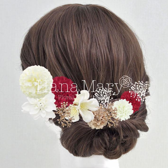 HanaMaryの髪飾りは生花をリアルに再現したアートフラワーと呼ばれるハイクオリティーな造花を使用しています。耐久性に優れ、成人式・卒業式やウェディングなどに何度でも繰り返し使用することができます。