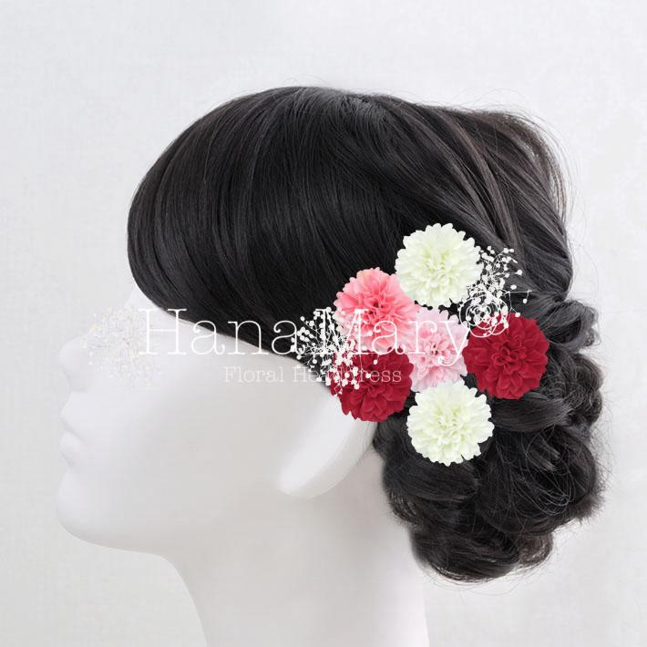 その日のヘアスタイルによって自由に一輪一輪配置できます。お花の数が多い場合でも、アメピンを追加して簡単にしっかりと固定できます。