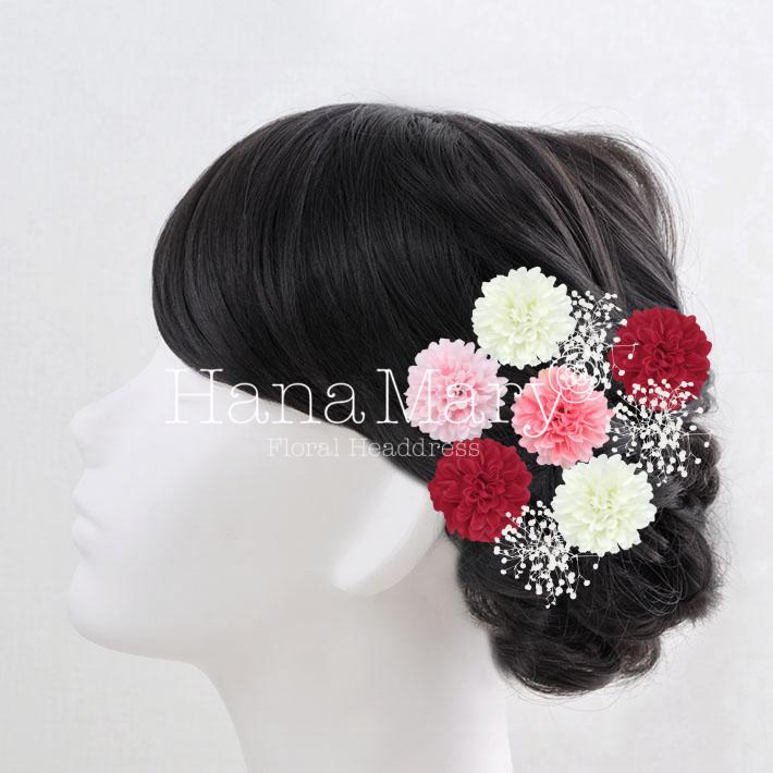 HanaMaryの髪飾りは生花をリアルに再現したアートフラワーと呼ばれるハイクオリティーな造花を使用しています。耐久性に優れ、成人式・卒業式やウェディングなどに何度でも繰り返し使用することができます。