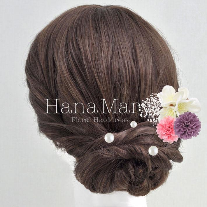 その日のヘアスタイルによって自由に一輪一輪配置できます。お花の数が多い場合でも、アメピンを追加して簡単にしっかりと固定できます。