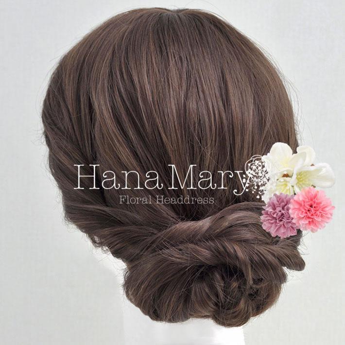 その日のヘアスタイルによって自由に一輪一輪配置できます。お花の数が多い場合でも、アメピンを追加して簡単にしっかりと固定できます。