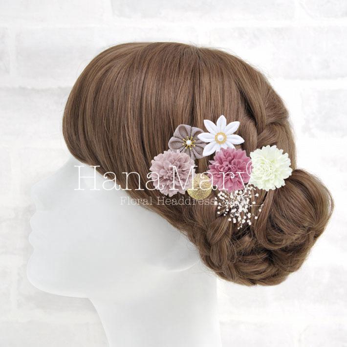 その日のヘアスタイルによって自由に一輪一輪配置できます。お花の数が多い場合でも、アメピンを追加して簡単にしっかりと固定できます。