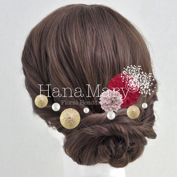 HanaMaryの髪飾りは生花をリアルに再現したアートフラワーと呼ばれるハイクオリティーな造花を使用しています。耐久性に優れ、成人式・卒業式やウェディングなどに何度でも繰り返し使用することができます。