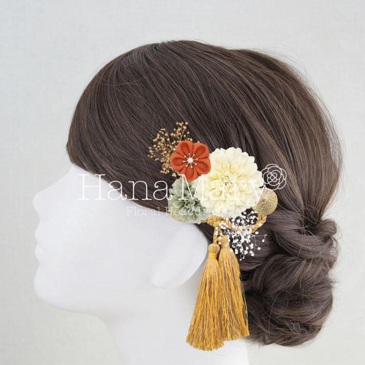 HanaMaryの髪飾りは生花をリアルに再現したアートフラワーと呼ばれるハイクオリティーな造花を使用しています。耐久性に優れ、成人式・卒業式やウェディングなどに何度でも繰り返し使用することができます。