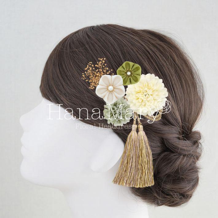 HanaMaryの髪飾りは生花をリアルに再現したアートフラワーと呼ばれるハイクオリティーな造花を使用しています。耐久性に優れ、成人式・卒業式やウェディングなどに何度でも繰り返し使用することができます。