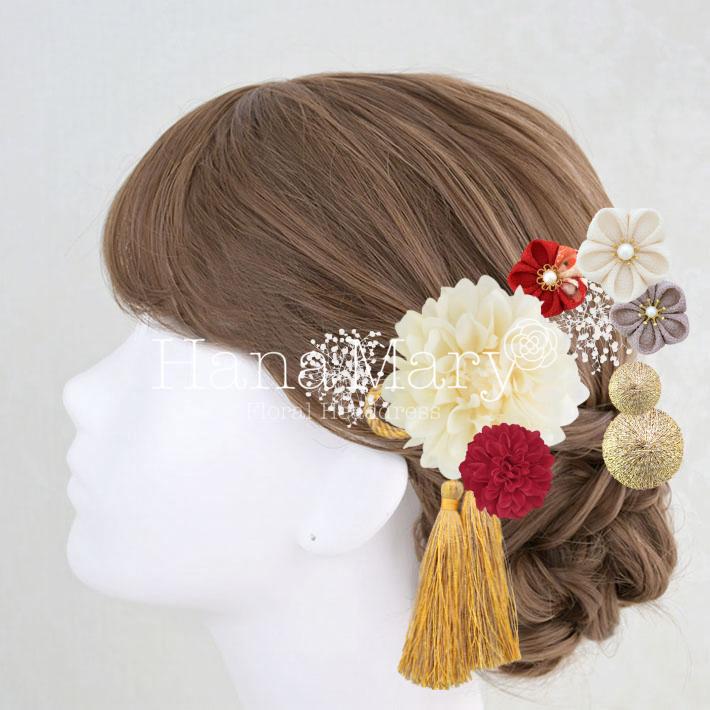 HanaMaryの髪飾りは生花をリアルに再現したアートフラワーと呼ばれるハイクオリティーな造花を使用しています。耐久性に優れ、成人式・卒業式やウェディングなどに何度でも繰り返し使用することができます。
