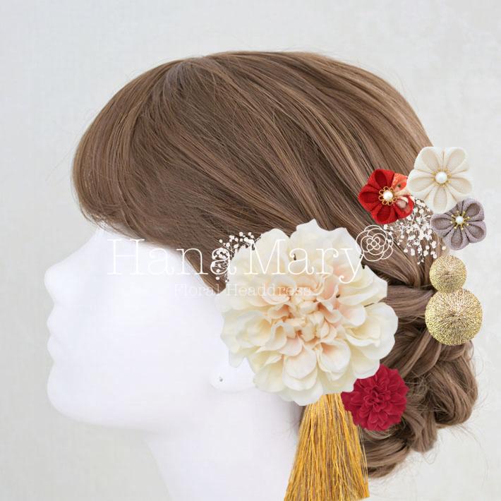 HanaMaryの髪飾りは生花をリアルに再現したアートフラワーと呼ばれるハイクオリティーな造花を使用しています。耐久性に優れ、成人式・卒業式やウェディングなどに何度でも繰り返し使用することができます。