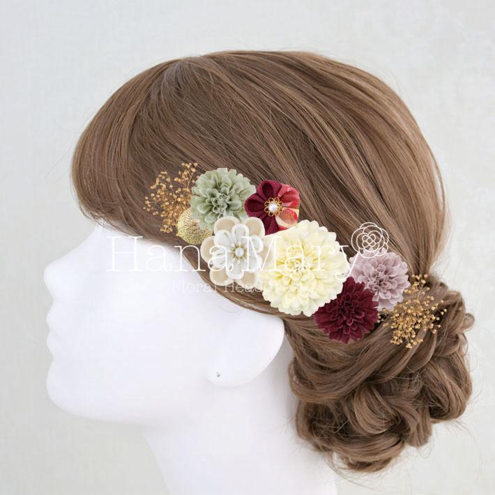 HanaMaryの髪飾りは生花をリアルに再現したアートフラワーと呼ばれるハイクオリティーな造花を使用しています。耐久性に優れ、成人式・卒業式やウェディングなどに何度でも繰り返し使用することができます。