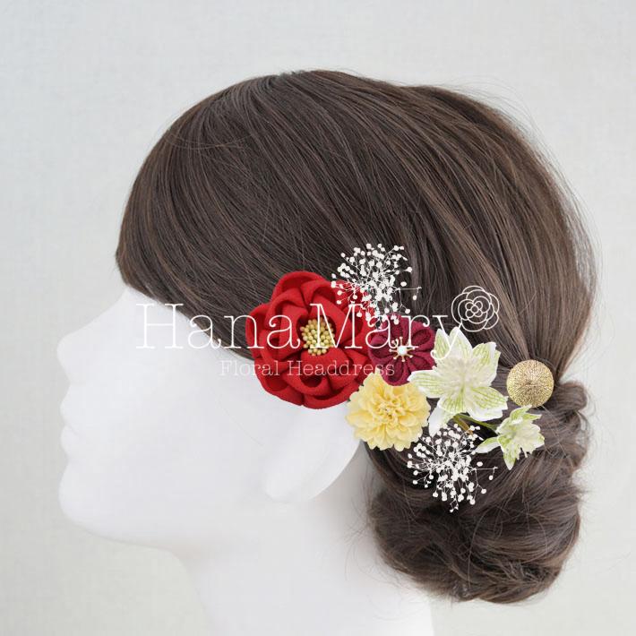 HanaMaryの髪飾りは生花をリアルに再現したアートフラワーと呼ばれるハイクオリティーな造花を使用しています。耐久性に優れ、成人式・卒業式やウェディングなどに何度でも繰り返し使用することができます。