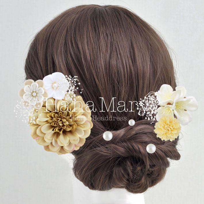 HanaMaryの髪飾りは生花をリアルに再現したアートフラワーと呼ばれるハイクオリティーな造花を使用しています。耐久性に優れ、成人式・卒業式やウェディングなどに何度でも繰り返し使用することができます。