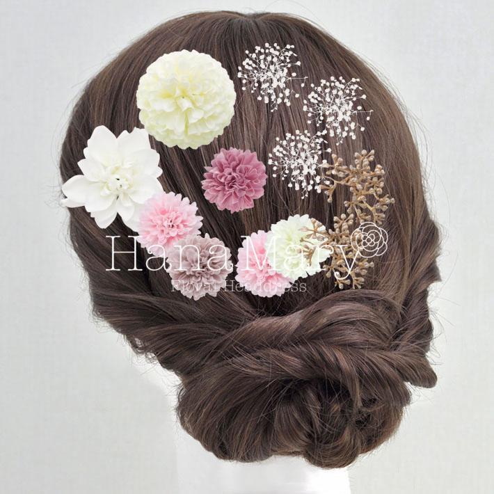 その日のヘアスタイルによって自由に一輪一輪配置できます。お花の数が多い場合でも、アメピンを追加して簡単にしっかりと固定できます。