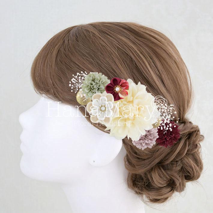 HanaMaryの髪飾りは生花をリアルに再現したアートフラワーと呼ばれるハイクオリティーな造花を使用しています。耐久性に優れ、成人式・卒業式やウェディングなどに何度でも繰り返し使用することができます。