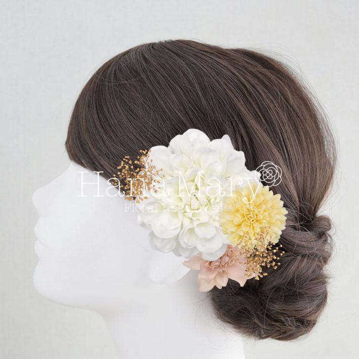 HanaMaryの髪飾りは生花をリアルに再現したアートフラワーと呼ばれるハイクオリティーな造花を使用しています。耐久性に優れ、成人式・卒業式やウェディングなどに何度でも繰り返し使用することができます。