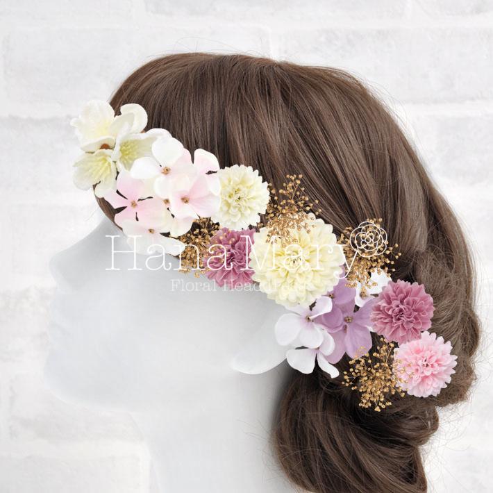 HanaMaryの髪飾りは生花をリアルに再現したアートフラワーと呼ばれるハイクオリティーな造花を使用しています。耐久性に優れ、成人式・卒業式やウェディングなどに何度でも繰り返し使用することができます。