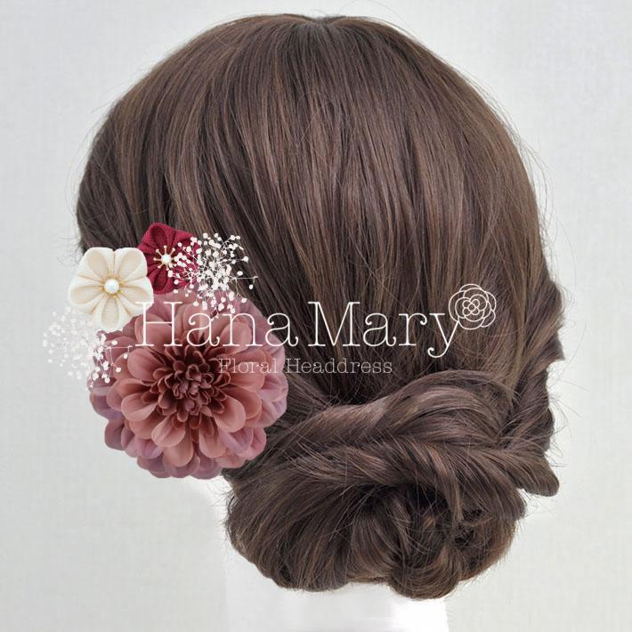 HanaMaryの髪飾りは生花をリアルに再現したアートフラワーと呼ばれるハイクオリティーな造花を使用しています。耐久性に優れ、成人式・卒業式やウェディングなどに何度でも繰り返し使用することができます。