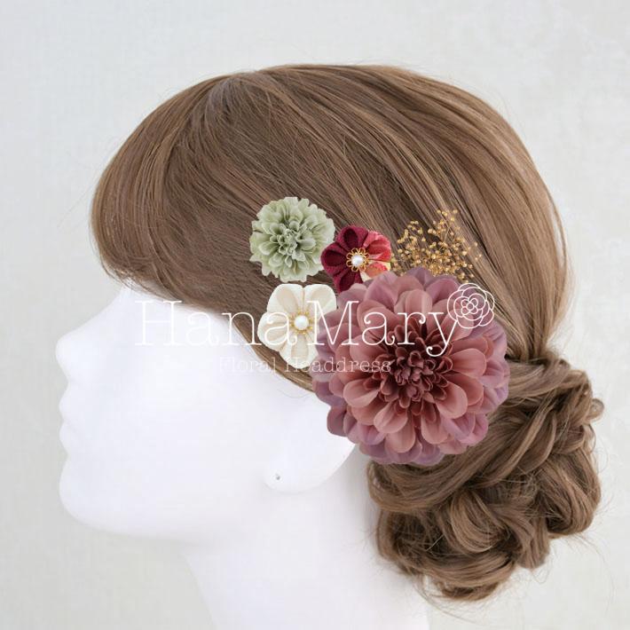 HanaMaryの髪飾りは生花をリアルに再現したアートフラワーと呼ばれるハイクオリティーな造花を使用しています。耐久性に優れ、成人式・卒業式やウェディングなどに何度でも繰り返し使用することができます。