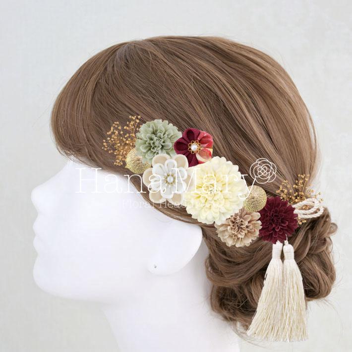 HanaMaryの髪飾りは生花をリアルに再現したアートフラワーと呼ばれるハイクオリティーな造花を使用しています。耐久性に優れ、成人式・卒業式やウェディングなどに何度でも繰り返し使用することができます。