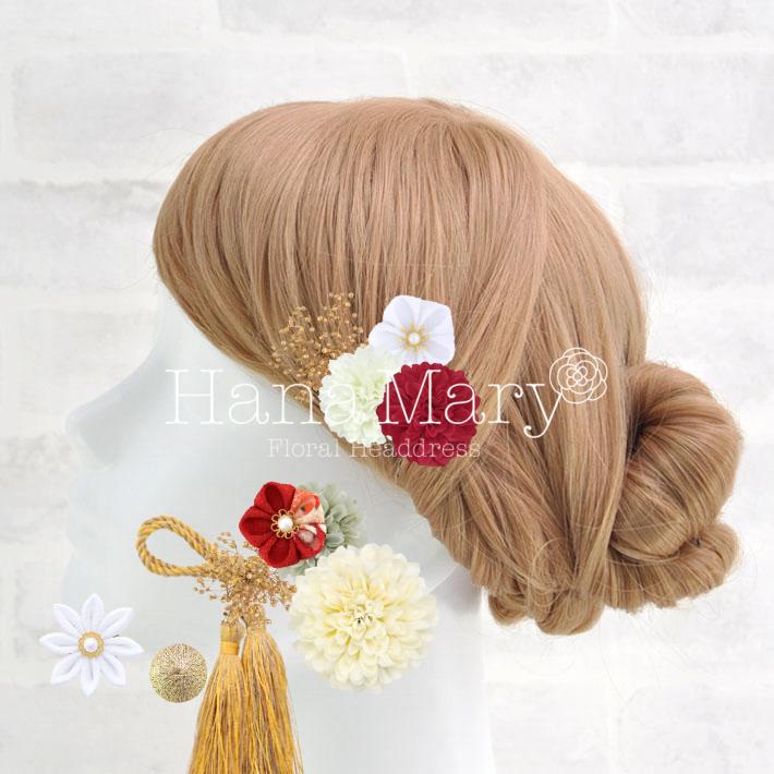 HanaMaryの髪飾りは生花をリアルに再現したアートフラワーと呼ばれるハイクオリティーな造花を使用しています。耐久性に優れ、成人式・卒業式やウェディングなどに何度でも繰り返し使用することができます。