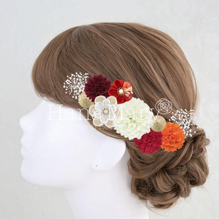 HanaMaryの髪飾りは生花をリアルに再現したアートフラワーと呼ばれるハイクオリティーな造花を使用しています。耐久性に優れ、成人式・卒業式やウェディングなどに何度でも繰り返し使用することができます。