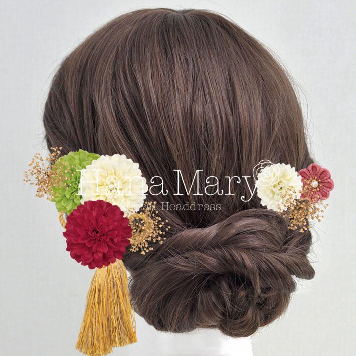 HanaMaryの髪飾りは生花をリアルに再現したアートフラワーと呼ばれるハイクオリティーな造花を使用しています。耐久性に優れ、成人式・卒業式やウェディングなどに何度でも繰り返し使用することができます。