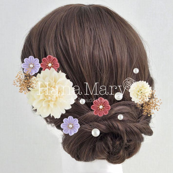 HanaMaryの髪飾りは生花をリアルに再現したアートフラワーと呼ばれるハイクオリティーな造花を使用しています。耐久性に優れ、成人式・卒業式やウェディングなどに何度でも繰り返し使用することができます。