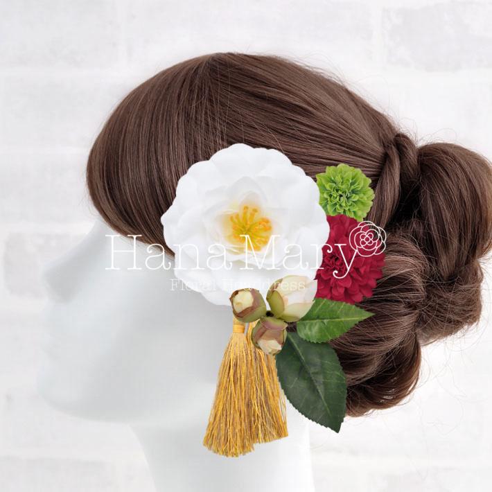 HanaMaryの髪飾りは生花をリアルに再現したアートフラワーと呼ばれるハイクオリティーな造花を使用しています。耐久性に優れ、成人式・卒業式やウェディングなどに何度でも繰り返し使用することができます。