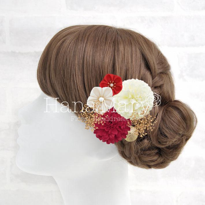 HanaMaryの髪飾りは生花をリアルに再現したアートフラワーと呼ばれるハイクオリティーな造花を使用しています。耐久性に優れ、成人式・卒業式やウェディングなどに何度でも繰り返し使用することができます。
