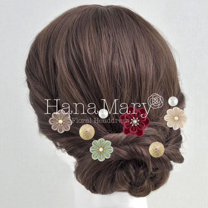 その日のヘアスタイルによって自由に一輪一輪配置できます。お花の数が多い場合でも、アメピンを追加して簡単にしっかりと固定できます。
