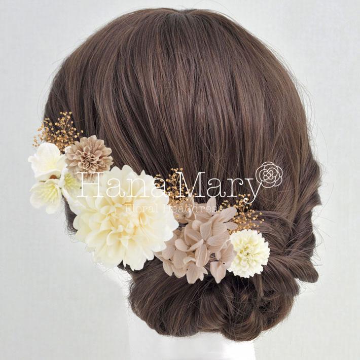 HanaMaryの髪飾りは生花をリアルに再現したアートフラワーと呼ばれるハイクオリティーな造花を使用しています。耐久性に優れ、成人式・卒業式やウェディングなどに何度でも繰り返し使用することができます。