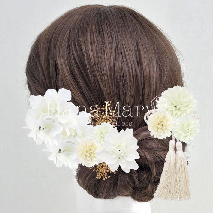HanaMaryの髪飾りは生花をリアルに再現したアートフラワーと呼ばれるハイクオリティーな造花を使用しています。耐久性に優れ、成人式・卒業式やウェディングなどに何度でも繰り返し使用することができます。