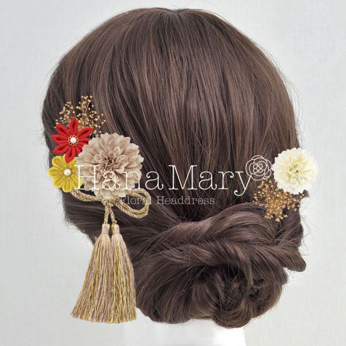 HanaMaryの髪飾りは生花をリアルに再現したアートフラワーと呼ばれるハイクオリティーな造花を使用しています。耐久性に優れ、成人式・卒業式やウェディングなどに何度でも繰り返し使用することができます。