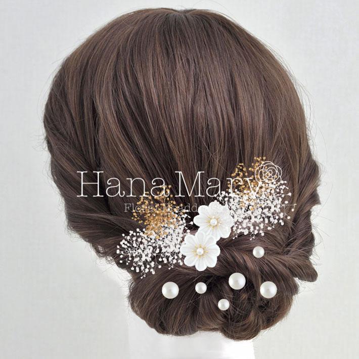 その日のヘアスタイルによって自由に一輪一輪配置できます。お花の数が多い場合でも、アメピンを追加して簡単にしっかりと固定できます。