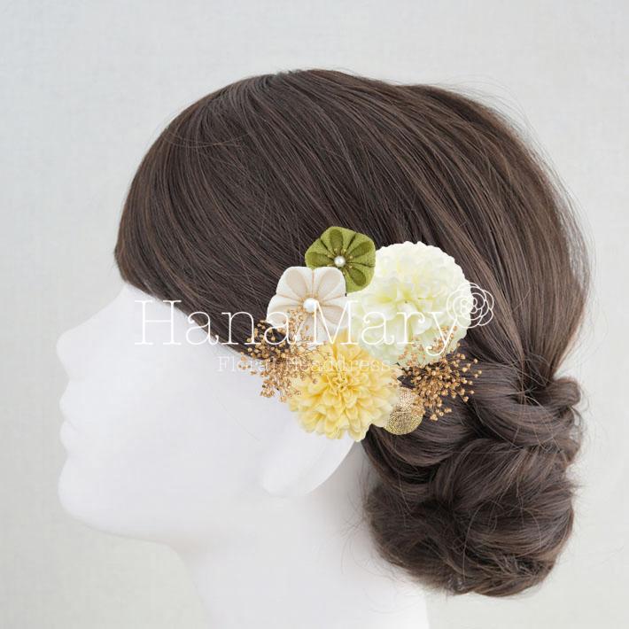 HanaMaryの髪飾りは生花をリアルに再現したアートフラワーと呼ばれるハイクオリティーな造花を使用しています。耐久性に優れ、成人式・卒業式やウェディングなどに何度でも繰り返し使用することができます。