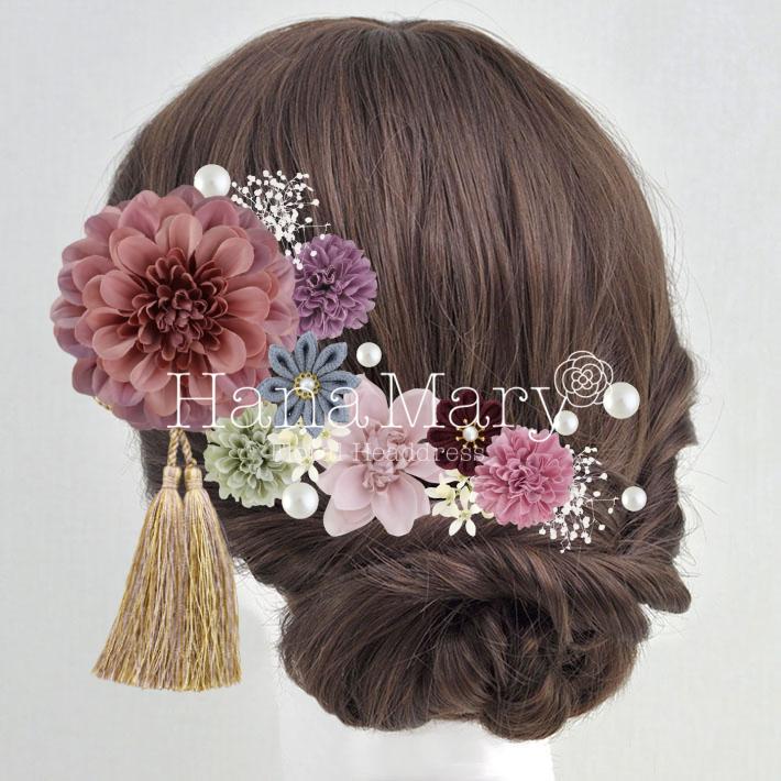 HanaMaryの髪飾りは生花をリアルに再現したアートフラワーと呼ばれるハイクオリティーな造花を使用しています。耐久性に優れ、成人式・卒業式やウェディングなどに何度でも繰り返し使用することができます。
