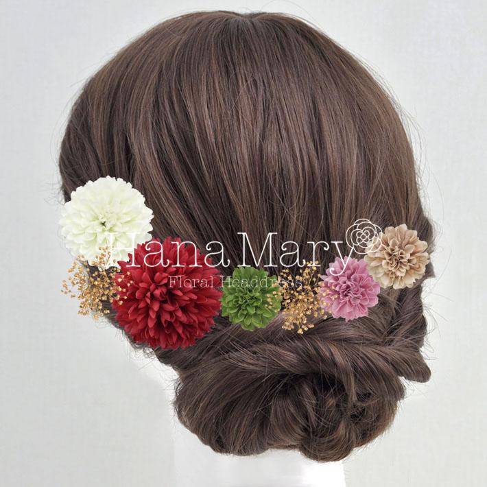 その日のヘアスタイルによって自由に一輪一輪配置できます。お花の数が多い場合でも、アメピンを追加して簡単にしっかりと固定できます。