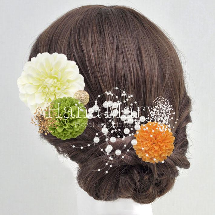 HanaMaryの髪飾りは生花をリアルに再現したアートフラワーと呼ばれるハイクオリティーな造花を使用しています。耐久性に優れ、成人式・卒業式やウェディングなどに何度でも繰り返し使用することができます。