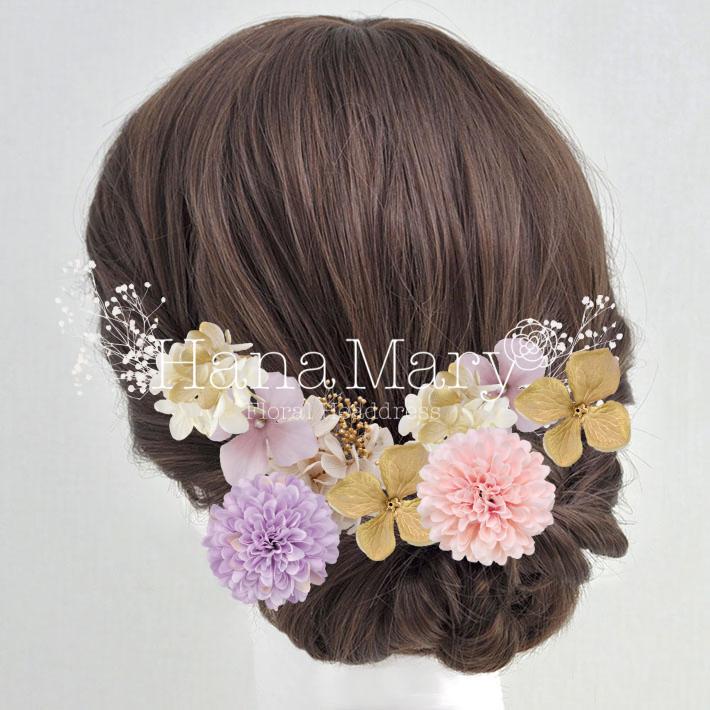 その日のヘアスタイルによって自由に一輪一輪配置できます。お花の数が多い場合でも、アメピンを追加して簡単にしっかりと固定できます。