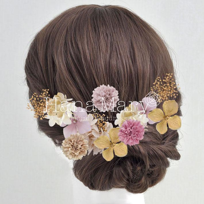 その日のヘアスタイルによって自由に一輪一輪配置できます。お花の数が多い場合でも、アメピンを追加して簡単にしっかりと固定できます。
