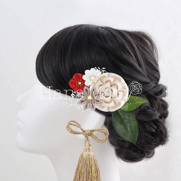 HanaMaryの髪飾りは生花をリアルに再現したアートフラワーと呼ばれるハイクオリティーな造花を使用しています。耐久性に優れ、成人式・卒業式やウェディングなどに何度でも繰り返し使用することができます。