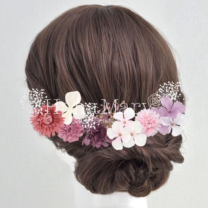 HanaMaryの髪飾りは生花をリアルに再現したアートフラワーと呼ばれるハイクオリティーな造花を使用しています。耐久性に優れ、成人式・卒業式やウェディングなどに何度でも繰り返し使用することができます。