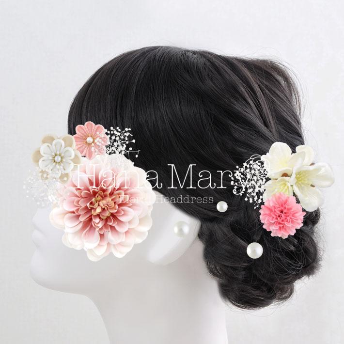 HanaMaryの髪飾りは生花をリアルに再現したアートフラワーと呼ばれるハイクオリティーな造花を使用しています。耐久性に優れ、成人式・卒業式やウェディングなどに何度でも繰り返し使用することができます。