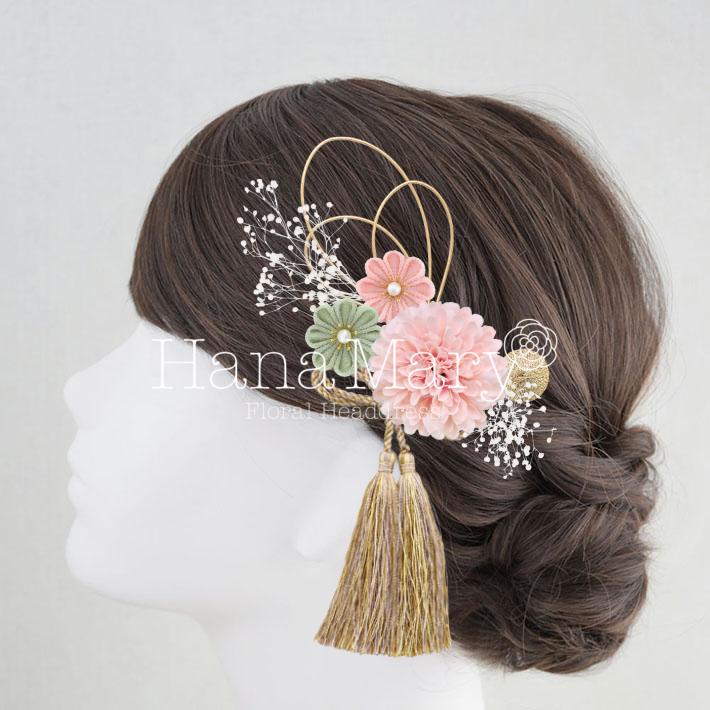 HanaMaryの髪飾りは生花をリアルに再現したアートフラワーと呼ばれるハイクオリティーな造花を使用しています。耐久性に優れ、成人式・卒業式やウェディングなどに何度でも繰り返し使用することができます。