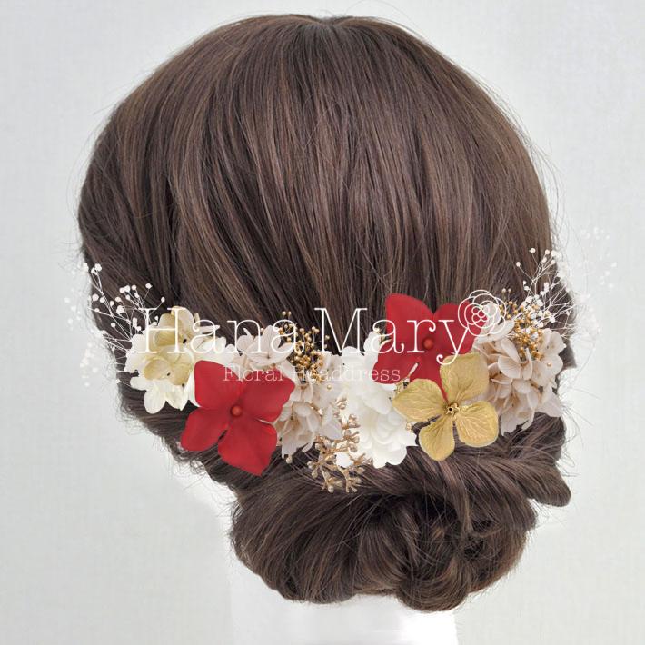 HanaMaryの髪飾りは生花をリアルに再現したアートフラワーと呼ばれるハイクオリティーな造花を使用しています。耐久性に優れ、成人式・卒業式やウェディングなどに何度でも繰り返し使用することができます。