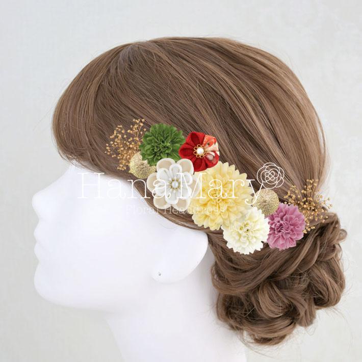 HanaMaryの髪飾りは生花をリアルに再現したアートフラワーと呼ばれるハイクオリティーな造花を使用しています。耐久性に優れ、成人式・卒業式やウェディングなどに何度でも繰り返し使用することができます。
